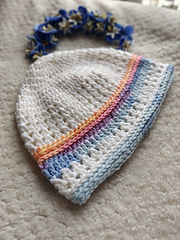 Worked top down, this beanie has two basic pattern repeats which create a beautiful texture. To provide comfort, there is no actual brim. It is light weight and perfect to keep your head warm in the mild weather.