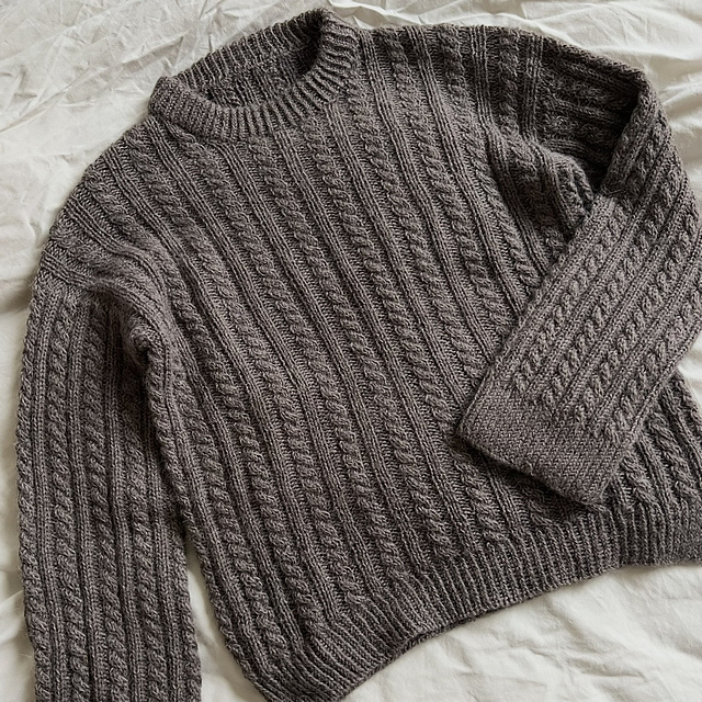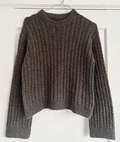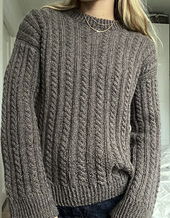 Maple Sweater is a classic sweater worked in a rib pattern with cables. The sweater is worked from the top down, where short rows are used to shape the shoulder. The rib edges are worked in twisted rib.