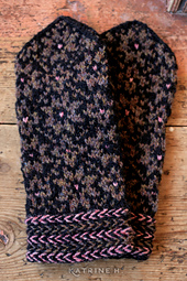 Norwegian rose mittens reimagined in an unexpected palette of brown, black, and pink, completed with decorative Latvian braided cuffs ♡