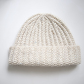 The Ray Hat is a seamless bottom-up hat worked in the round and featuring a beautiful rib pattern that brightens up winter. There are two versions: one knitted entirely in rib for a snug fit and one with a deep ribbed cuff and a crown knitted in stockinette stitch with a different yarn.