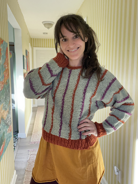Barcliff is a simple cropped sweater with dolman sleeves. The cozy fit males for a perfect, comfy, slouchy layering piece! Knit up in Wooldreamers Manchelopis unspun yarn on large needles, Barcliff is a super quick, satisfying project!