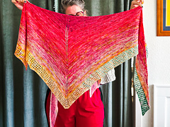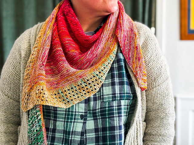 This shawl is so fun to knit and wear, and will elevate any outfit. I love wearing this shape kerchief-style, wrapped around my neck with the bottom of the triangle pointing downwards.