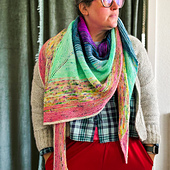 *Party Garty* : A design-your-own striped asymmetrical triangle-shaped shawl knit from the top down, using garter stitch as the backdrop for super fun stripes and color blending with 2 bind off options.