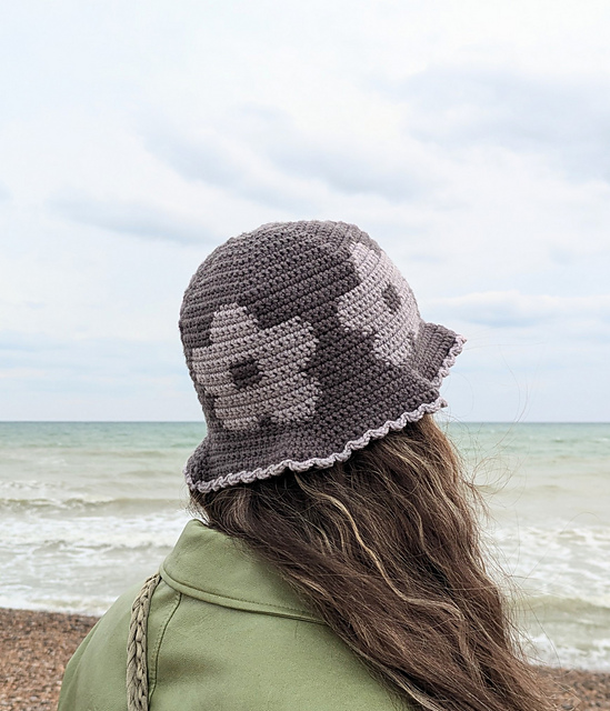 Featuring delicate buttercup motifs and a classic bucket hat shape, this design is perfect for year-round wear. Choose warm, fluffy yarns for winter or lightweight cottons for spring and summer.