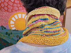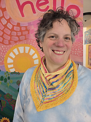 For late winter in Wisconsin, this is what I would call an Inside Scarf. Yes, I have a collection of lighter ones for warmer months and wearing in the house as well as heavy ones for the bitter cold! The easy shaping creates a triangle point in front with less bulk across the back of the neck.