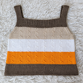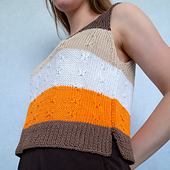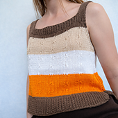 A modern striped summer tank with a clean silhouette and subtle texture. Designed to be worn with ease and comfort, Amber Stripe Tank features horizontal color stripes, side vents and narrow straps. Front and back are worked flat and are identical, then seamed.
