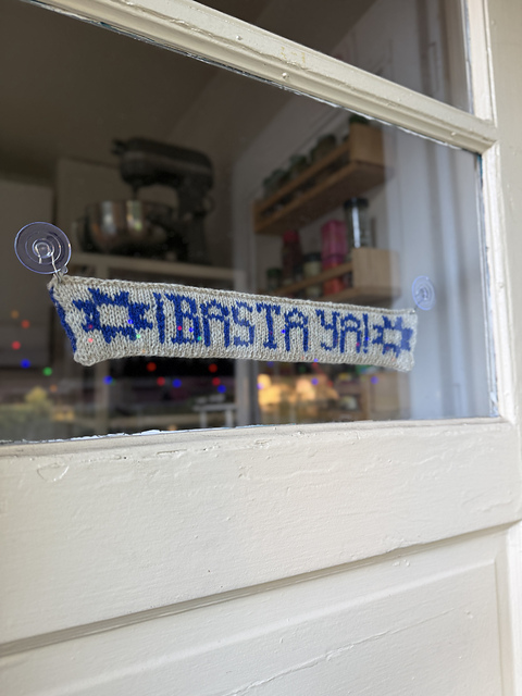 For those unfamiliar with the phrase, “¡Basta Ya!” translates to “enough,” pero it has a much stronger connotation. “Basta” is a definitive end; a complete refusal to allow injustices to continue. The phrase has been used across many protests in Spanish-speaking countries, and as Latino immigrants are targeted by the ICE Occupation in Minneapolis and the United States at large, I felt a strong desire to create a knitting pattern for and with the Latinx knitting community.