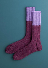 Main Color (MC): 1 (1, 1, 1–2) skein(s); approximately 85–120 (170–195, 230–250, 295–320) total yards required. We used Teal Storm for one pair of socks and Red Violet for the other.