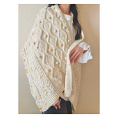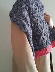 XO Shawlは, XO (KISS-HUG) マークのように見えるアラン模様といろいろなケーブル模様が特徴の大判のショールです. 往復に編み, 途中でドイツ式引き返し編みをして扇形に仕上げます.
