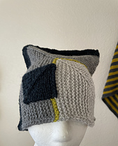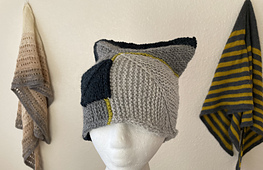 This simple design knits up fast in worsted weight to aran yarn, or more slowly in finer things. You’ll want to work at a pretty close gauge and knit your hat so that once finished, it fits the intended wearer with a little bit of negative ease—but you can knit it a little larger for a fit that exaggerates the faux horns/ears, or a little smaller so that these are diminished when the hat’s pulled down tight.
