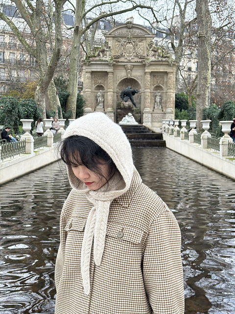 Luna Hood 是一款自上而下、无缝编织的针织帽兜,灵感来自新月柔和的弧线。细腻的麻花、利落的 Distitch 边和德式短行塑形,让它既有结构感又舒适,适合微凉的日子。