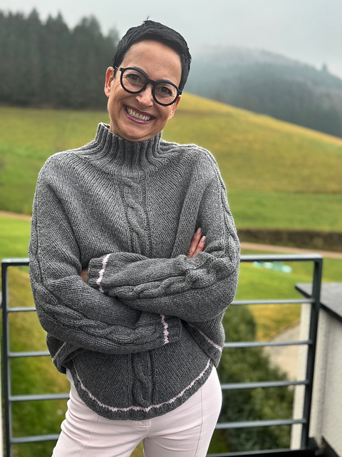 For ultimate comfort, short rows are worked at the end of the collar. The design then transitions into a sophisticated raglan construction – expressive cables, which you already know from the Sansa Sweater, run elegantly down the body. The comfortable oversized fit ensures a casual look and makes the Sansa poncho a versatile companion – ideal for throwing on on cool days and perfect for relaxed, stylish looks.