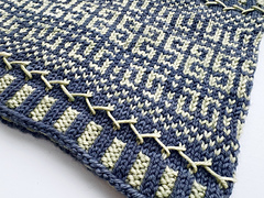 Stranded colorwork is as fashionable as it is functional, providing extra warm from the air trapped by floats on the wrong side of the fabric and impressing others with its patterning. The Mosaika Cowl takes it up a notch with the addition of embroidery added after the knitting is completed.