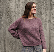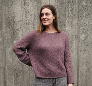 This garment is worked top-down, in the round. Within the neckband, short row shaping is incorporated to optimise fit. The yoke features an eyelet lace pattern that continues into the body and sleeves. Once the yoke is completed, stitches are separated into body and sleeves, which are each worked separately and in the round. The knitter can choose whether to continue the eyelet lace pattern throughout the body and sleeves, or transition into stockinette.