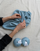 Sommarøy T-shirt is worked from the top down in a pattern with elongated stitches on the yoke. First the circular yoke is worked in pattern, then in stocking stitch with german short rows to make the back higher than the front. Lastly, raglan increases are worked before the body and sleeves are worked separately and finished with a garter stitch hem.
