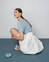 Sommarøy T-shirt has a feminine look with its round, elegant yoke. The elongated-stitch technique is easy to knit and creates a beautiful texture on the upper part of the T-shirt. The T-shirt is knitted in the lovely Silk Linen, which has a beautiful surface and is perfect for warm days.