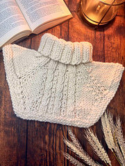This one-size-fits-most pattern is designed for intermediate knitters and can be easily adjusted for size by using lighter weight yarn and smaller needles. Pattern is knit in the round from the neck down, with raglan increases for the shoulders and then dividing into front and back sections that are worked flat and separately. A perimeter border in purl stitches completes the project. The set-up rounds require some concentration but after that it goes quickly. It employs left or right cross stitches (1x1 cables) that work up quickly for wonderful texture and style in an otherwise simple stocking stitch cowl with a mock or full turtleneck - your choice! And you can work cables without a cable needle, with video tutorials included to show you how.