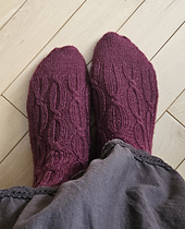 The socks are knitted cuff down and this pattern is perfect to modify to your desire. As for me, I made one sock shorter than the other as my feet are not the same length. The inseam and cuff length can also be changed, as well as the heel and toe. Multiple options will be provided for each.