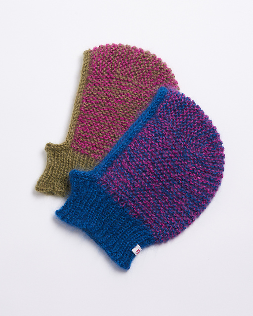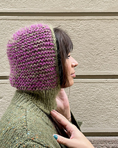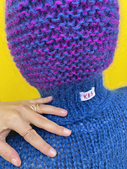 Soft, voluminous, and colorful, this balaclava is worked top-down in garter stitch with a 1x1 ribbed neck and an I-cord finishing edge. Two strands of lace yarn - mix contrasting colors or shades from the same palette - and mohair give it its signature fluff and warmth.