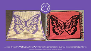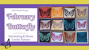 *February Butterfly* is the second pattern in the *2026: A Year of Butterflies* series of large squares. Each month's design can be made using interlocking crochet or overlay mosaic crochet.