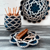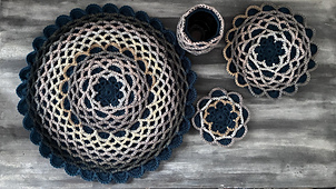 Infinity Bloom is a round design that features bold surface stitches. The fabric works up three layers thick, making it ideal for thermal projects. It’s well suited to coasters, trivets and pot plant savers (depending on yarn composition)