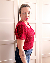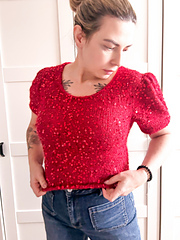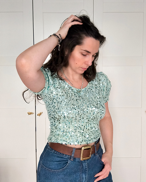 Short sleeves with a delicate puff are worked last, accentuated by small