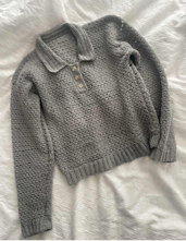 Der hækles med 1 tråd 450 (500) 550 g Esther fra Permin (50g =230 m). Vist i størrelse 1 i lysegrå i farven 883418 Grå.