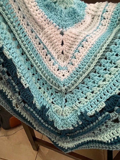 This extended version of the Winter Square is 31 rounds that I used in creating an alternative to a temperature blanket square. Your finished blanket will depend on your choice of yarn and hook and your tension. I used medium #4 yarn and a 7.0mm hook.