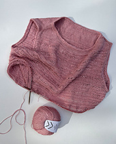 Sommarøy Top is worked from the top down in a pattern with elongated stitches. First the upper part of the yoke is worked with a saddle shoulder. Stitches are then cast on to shape the front of the neck. Front and back sections are worked separately down to the underarm, where the sections are joined and the body is worked in the round. All hems are worked in garter stitch.