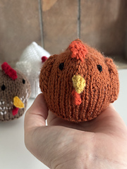 Learn to knit these cute chicken toys. These are so fun and quick to make, and you can knit them in any colours that you like. Everything is knitted flat and sewn together. Your chicken will measure around 8cm tall. This is perfect for beginner level knitters.