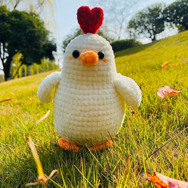 Description: Meet the Red Heart Comb Chick! This adorable amigurumi is soft, cuddly, and features a unique heart-shaped comb on its head. It's a quick and fun project perfect for gifting or as a cute desk companion.