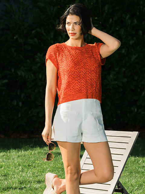 Coralline embodies effortless summer style, pairing an airy chevron lace pattern with the gorgeous hand-dyed colors of Tillie. Knit flat in pieces from the bottom up and seamed, Coralline has a wonderful balance of soft drape and structure. Pair this top with elegant dresses, slim capris, or your favorite shorts and feel instantly put together.