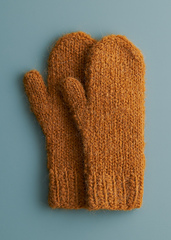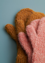 SAMPLES: The Peony Pink mittens are the Toddler/Kid size, and the Pink Bisque and Cork Tree mittens are the Adult Small size.