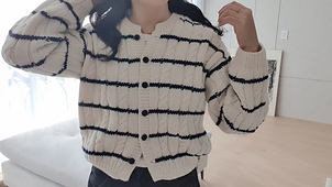 더 클래식 가디건은 클래식한 줄무늬 패턴과 클래식한 꽈배기 패턴이 더해져 만들어 진 클래식한 패턴입니다.