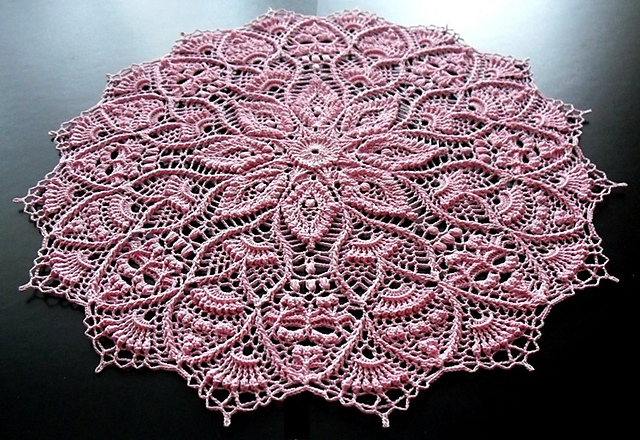Your tension will determine things like hook size, yardage, finished size, and height of stitches. Using recommended thread and hook this pattern will use approximately 437 – 473 yards of thread. And your finished doily will be about 36 cm /14’’ in diameter from point to point.