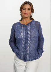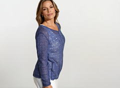 The Lonne cardigan is a great project for advanced knitters. It's knitted from the bottom up in separate pieces, which are sewn together at the end. The eye-catching details of this cardigan are the lace hem and the elegant lace border on the front panels. The main (eyelet) pattern is quite easy to knit, but the lace pattern requires some experience.