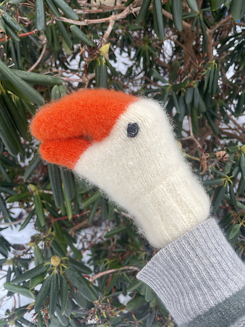 The pattern consists of 52 stitches. Knitting gauge 26 stitches = 10 cm. The mittens are knitted in Rauma fine wool and then felted in machine.