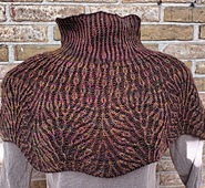 The design consists of 3 stitch patterns, and all increases are worked in only 2 rounds, most at the shoulders and fewer at the back center and even fewer at the front center, resulting in a very nice fit.