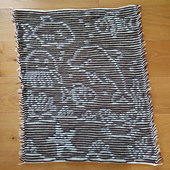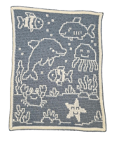 This pattern is written for 2 colors of yarn, any tapestry crochet (color changes) would be done manually and are not included in the pattern. This blanket can be made in any weight yarn, but I recommend worsted weight (4) to ensure the size. The pattern is 109 stitches across by 129 rows tall. If made with worsted weight yarn, the finished blanket should measure about 33” wide x 41” tall, not counting the fringe or border.