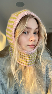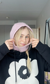 The Hilkka Hood is a super soft and comfy piece that keeps your head and neck warm. You can knit it with stripes or in a solid color, whichever you prefer. The hood is worked top down and is an easy, fun and quick knit.