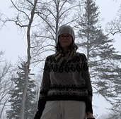 Cozy and warm pullover, with a bold colorwork pattern. Using aran weight yarn, this seamless sweater works up quickly.