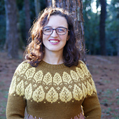 The pullover is knit top-down in the round with a round-yoke construction. The back neck is shaped with short rows for a better fit. The stranded colorwork is worked from charts and additional plain rnds can be added for better fit. After separating the sleeve sts, the body is knit in the round to the hem. The sleeves are worked last. Stranded colorwork is worked before the hem of the body and sleeves.