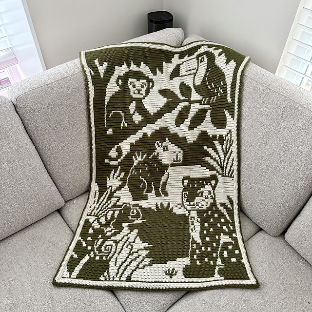 This beautiful Heart of the Amazon blanket is a perfect size for gifting: not too big, yet large enough to impress. Created with the Overlay Mosaic Crochet technique, it combines texture, elegance, and playful charm.