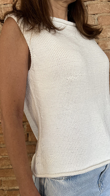 Laguna Top é uma regata top-down, ou seja tricotada de cima para baixo, clássica e moderna, desenvolvida para complementar os modelos de verão. Levemente acinturada, perfeita para ser usada com saias, calças e bermudas. Aqui ela é apresentada em 4 tamanhos adultos.