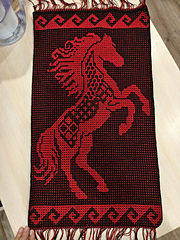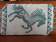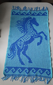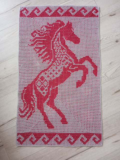 This crochet pattern is designed for a towel, wall hanging, placemat, or small rug.