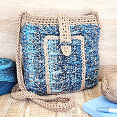 The Chroma Crossbody Bag is a hands-free purse with lots of color and texture! Self-striping yarn is combined with sturdy cotton yarn for a strong and beautiful fabric, and the raised line texture is created with post stitches. The unlined bag is finished with a front pocket, a tab closure and a crossbody strap. This is an intermediate project.