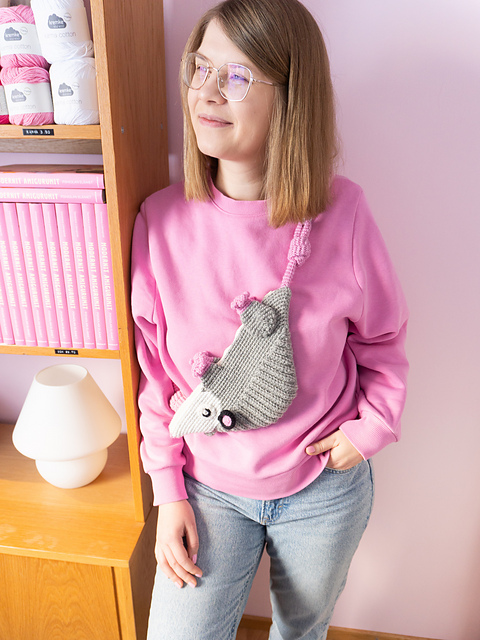 Crochet your own adorable opossum bag with this downloadable (and printable) PDF crochet pattern. Pepper is a practical opossum with a cute pink lining, a zipper and a spicy attitude. The bag is 32 cm (12.6") wide and 14 cm (5.5") deep.