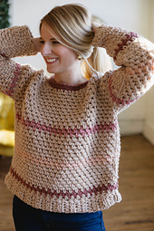 * You can find the free pattern here - [https://cozynooksdesigns.com/simplestripessweater][1] *