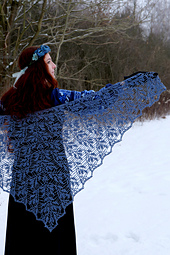 Do wykonania chusty potrzeba 900–1200 m włóczki light fingering lub 800–1000 m włóczki sport.