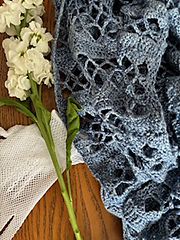 A pretty, lacy, rectangular wrap designed to celebrate the first diamond of the season, Daphne Bridgerton. When blocked, the lace opens out into sparkly diamonds.